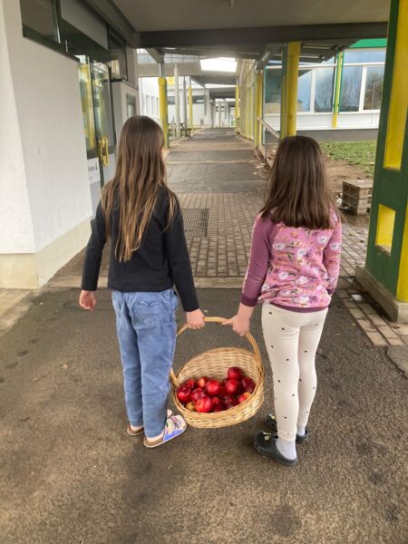 Im November brachten uns Herr Merkel und Herr Sechtling vom Rotary-Club Kaufungen-Lossetal wieder jede Woche einen leckeren Apfel pro Kind. Die Schülerinnen und Schüler ließen es sich schmecken.