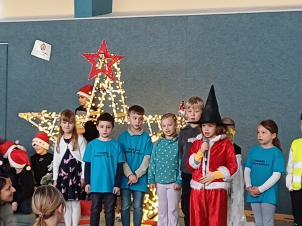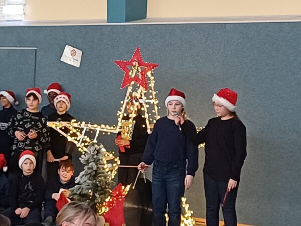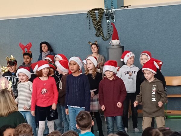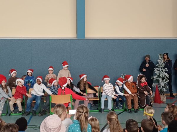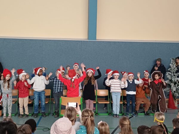 Am letzten Schultag traf sich die komplette Schulgemeinde in der Turnhalle und durfte stimmungsvolle, lustige und fetzige Beiträge einzelner Klassen genießen.